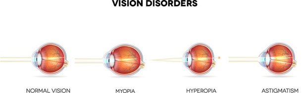 In this condition the cornea is not perfectly round but oval in shape. Hence eye is unable to focus clearly. It is usually seen along with myopia and hypermetropia.